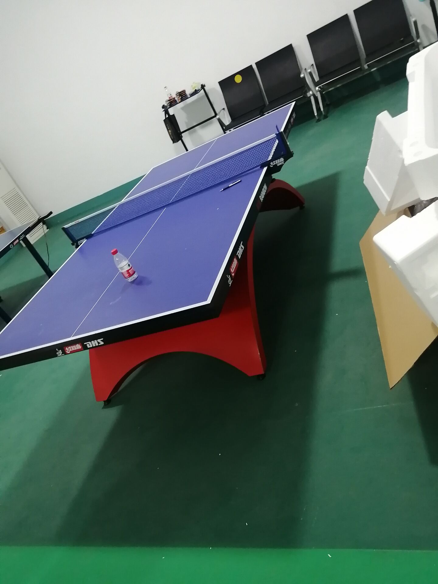 國際乒乓球聯合會(ITTF)規定的標準乒乓球桌長2.74米,寬1.525米,高76厘米。這是國際上公認的標準尺寸,也是在大多數國家使用的規格。此外,桌子的邊緣需要是圓形或直角,而且必須有原地板位于每個角上和中心交叉處,以控制球的反彈和方向。
