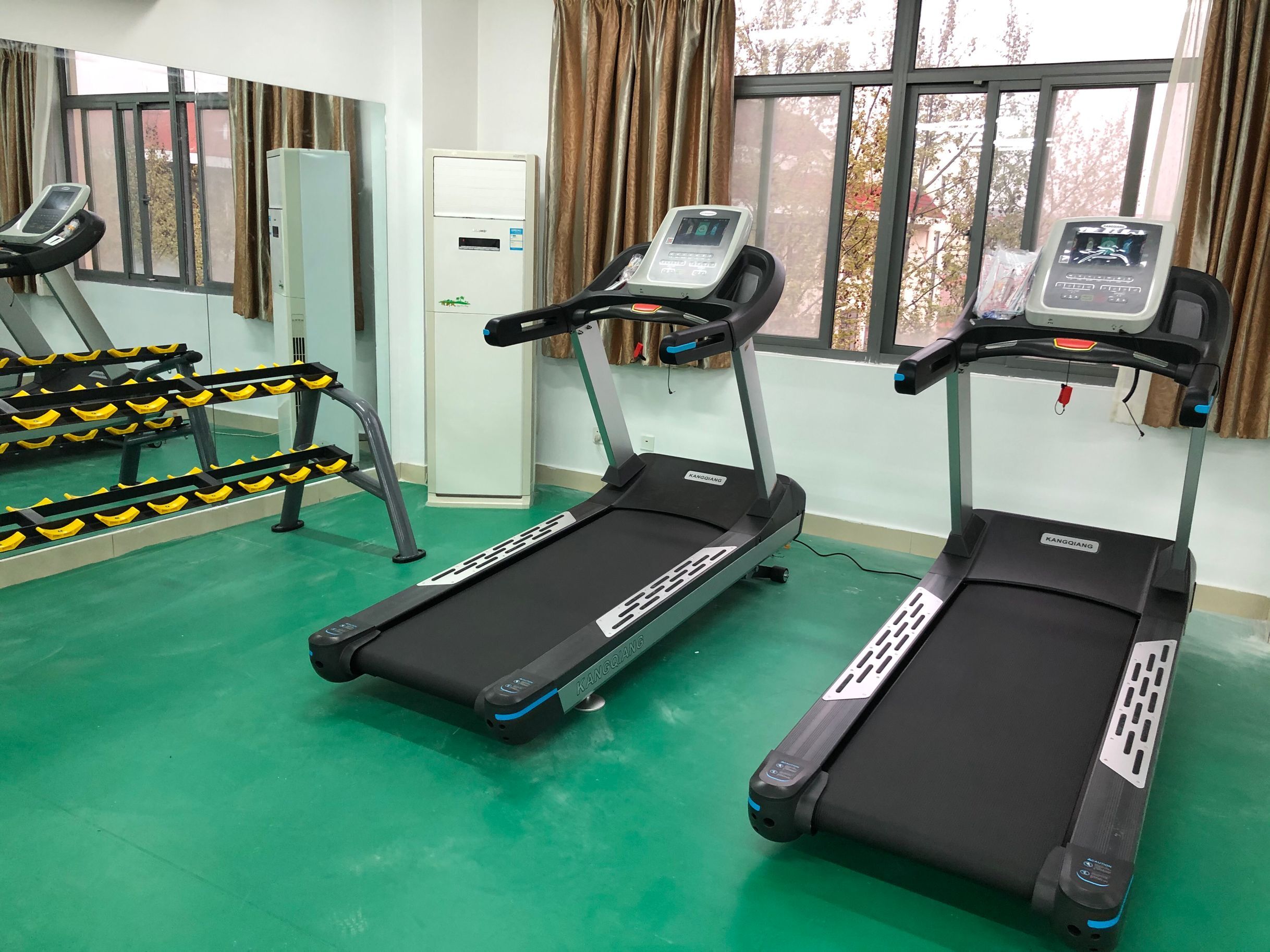 健身房有氧康強商用跑步機和康強動感單車搭配組合,即能滿足日常的走路、跑步鍛煉,也能進行大強度的單車訓練項目。