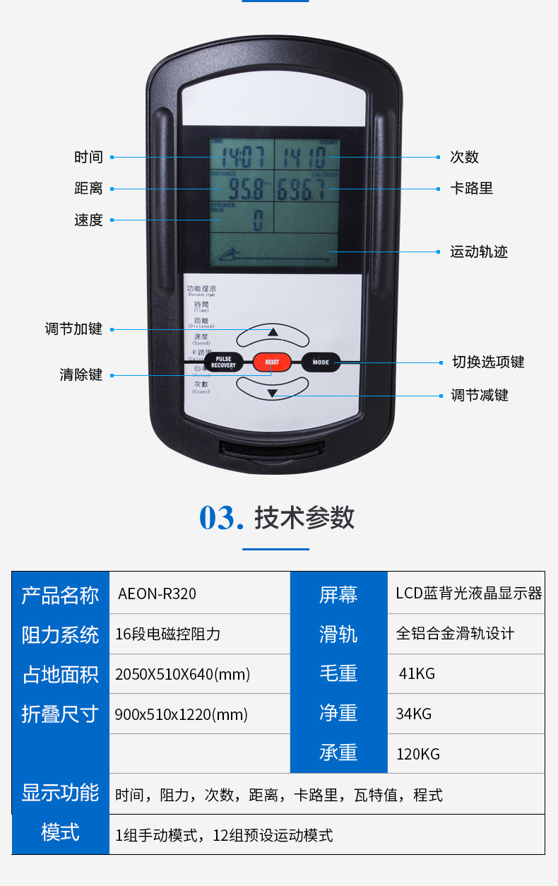 | 型號 | AEON正倫原裝進口R320劃船器 | ||