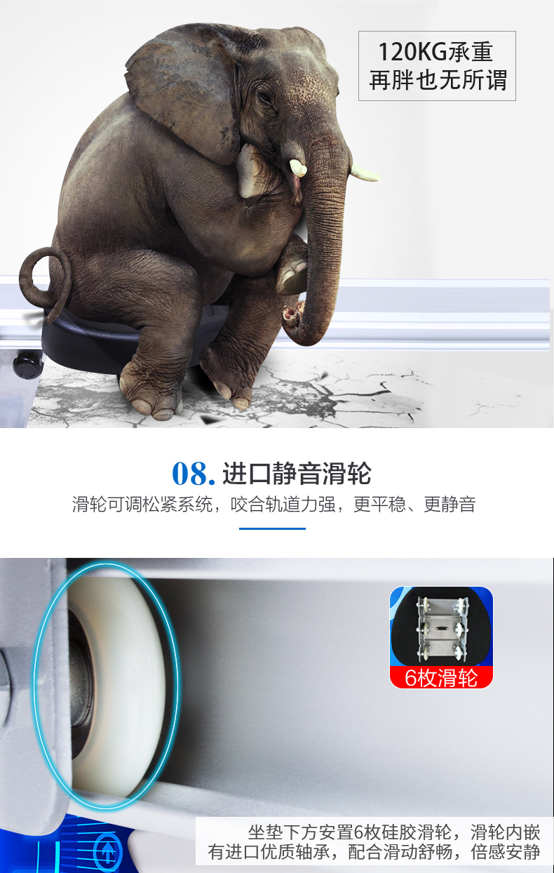 坐墊:采用寬厚柔軟的新型坐墊,設(shè)置多組滑輪。